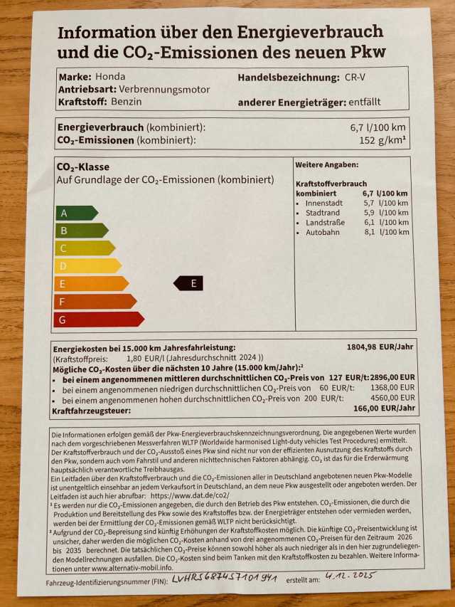 CO₂-Emissionen kombiniert: 4 g/km